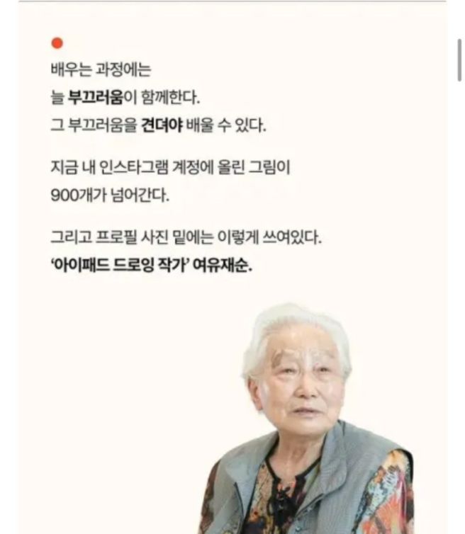 키워드 : 여유재순, 드로잉 아티스트, 아이패드 드로잉, 인스타그램, 90세, 도전, 배움