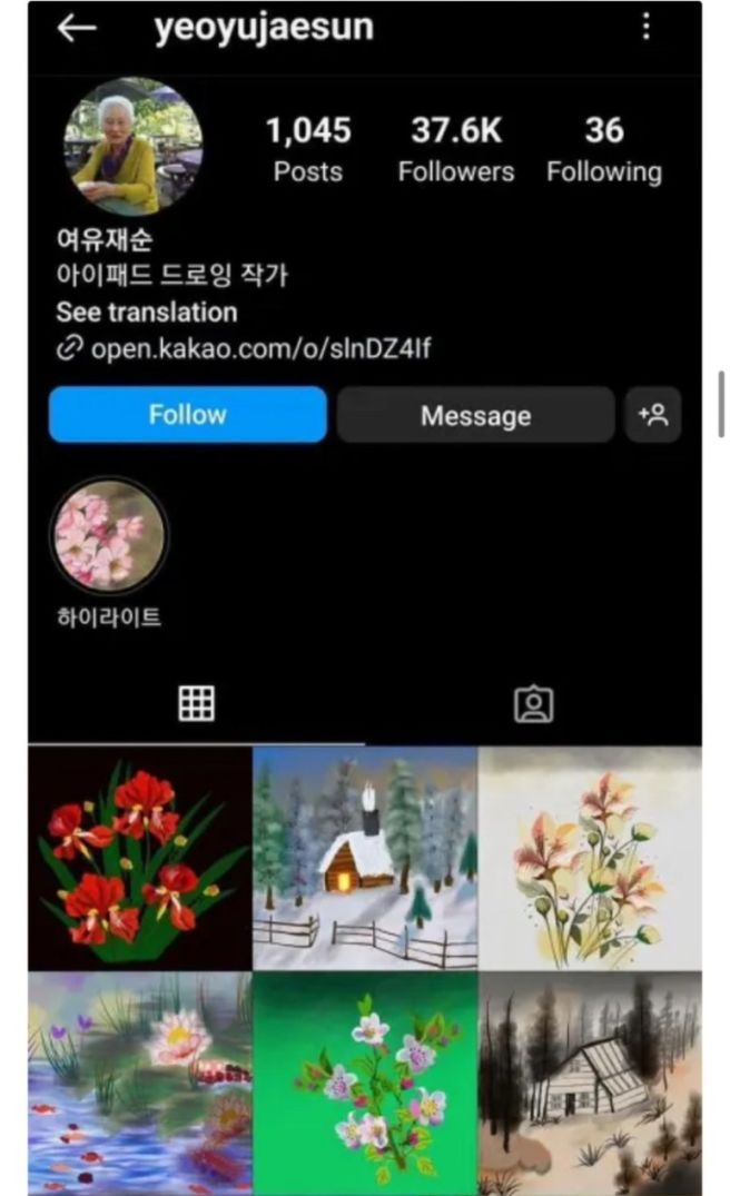할머니께서는 ‘여유재순’이라는 작가명 아래 아이패드를 사용하여 그림을 그리고, 그 작업물을 인스타그램에 업로드하십니다. 인스타그램 계정은 여기에서 확인하실 수 있으며, 현재 8만 명 이상의 팔로워와 함께 활발한 소통을 이어가고 있습니다.