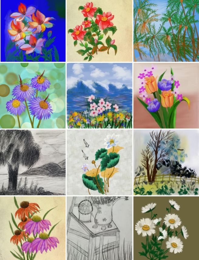 여유재순 작가의 대표적인 활동은 아이패드를 활용한 드로잉입니다. 전통적인 미술 도구가 아닌 디지털 기기를 사용하여 그림을 그리는 것은, 디지털 시대에 발맞춘 새로운 예술의 형태라 할 수 있습니다. 할머니께서는 초기에는 낯설고 어려웠던 아이패드 사용법을, 스스로의 노력과 꾸준한 연습을 통해 차근차근 익혀 나가셨습니다.