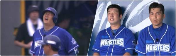 경기가 진행되면서 최강 몬스터즈의 득점 기회가 번번이 무산되자 선수들 사이에 불안감이 서서히 퍼지기 시작했습니다. 특히 팀의 중심 타자인 이대호가 타석에서 평소와는 다른 모습을 보이며 어려움을 겪었습니다. 그는 중요한 순간마다 타격에 실패하면서 스스로도 아쉬움을 감추지 못하고 고개를 떨구는 모습을 보였습니다. 이대호의 부진은 팀의 공격에 큰 영향을 미쳤고, 그가 팀의 4번 타자로서 발휘해왔던 강력한 타격이 이번 경기에서는 좀처럼 나오지 않았습니다.